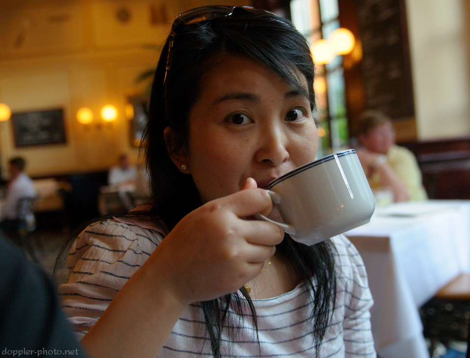 We had dinner Thursday evening at Bouchon, a French-style restaurant housed in the Venetian hotel.  Here, Xia has some tea during dinner.