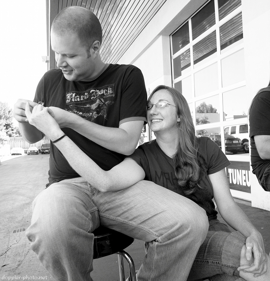 Calista (right) is one of the drivers for the Miata. Her boyfriend was trying to re-assemble a multi-loop ring for her, which she was trying to grab back before it came to an untimely demise. In a feat worthy of at least a couple brownie points, a few moments later, he returned her ring fully reassembled.
