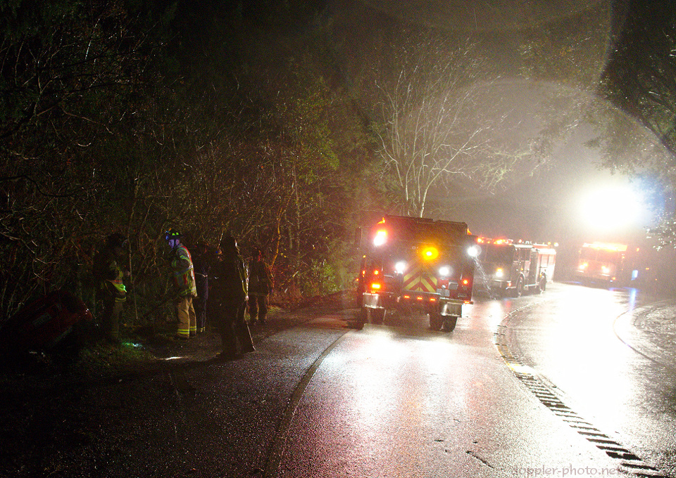 This all came to a head last night, when I spotted a car that had slid off a dark mountain road in the pouring rain. After the first rescue vehicle arrived and discovered the vehicle to be empty, I started taking photos. The setup was a joy to use in the darkness, and the small size combined with the speed with which I could adjust settings, adjust focus, and take a shot meant that the camera didn't get too soaked, in spite of the downpour. In a word, the experience felt effortless.