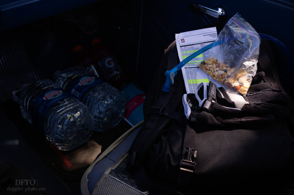 Almost everything in this picture was on the checklist, and having this stuff ready to go was my foundation for the weekend. I've run out of water before and I've run out of food before, and there's nothing worse than to be in a position to do great work and then to miss those moments because you're trying to find a water fountain, or you're starting to feel light-headed because of dehydration or low blood-sugar.